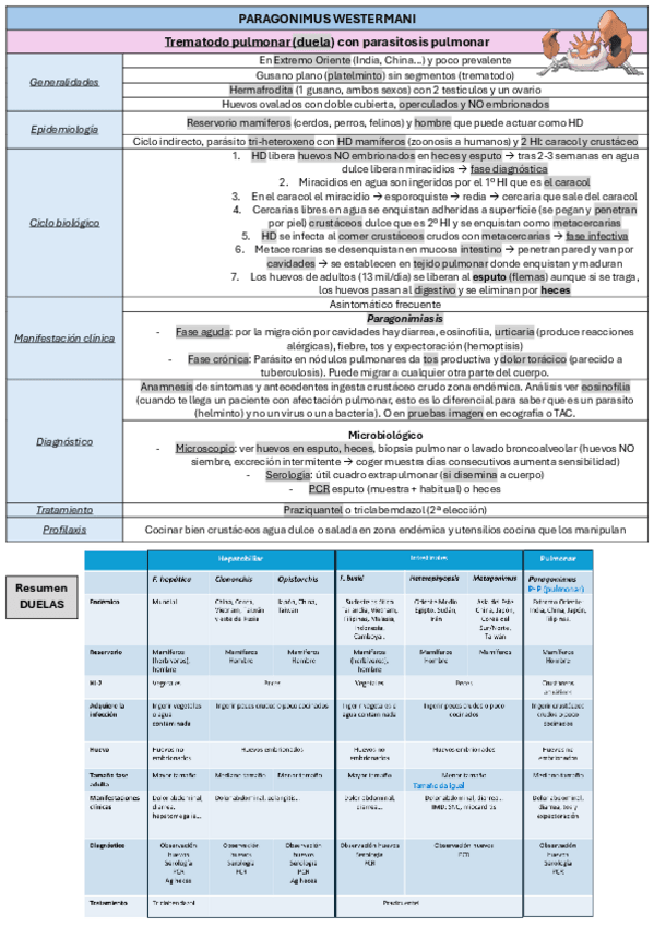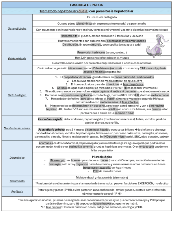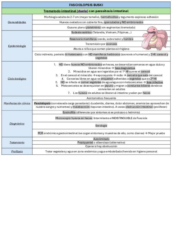He publicado nuevos apuntes de 4º Parasitología: Tablas helmintos