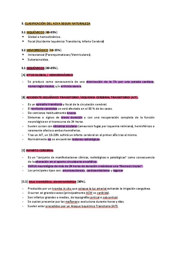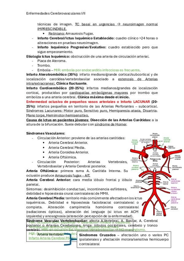 Clases Enfermedades Cerebrovasculares I y II. En rojo lo que dijo el profesor importante en la tutoría previa al examen.