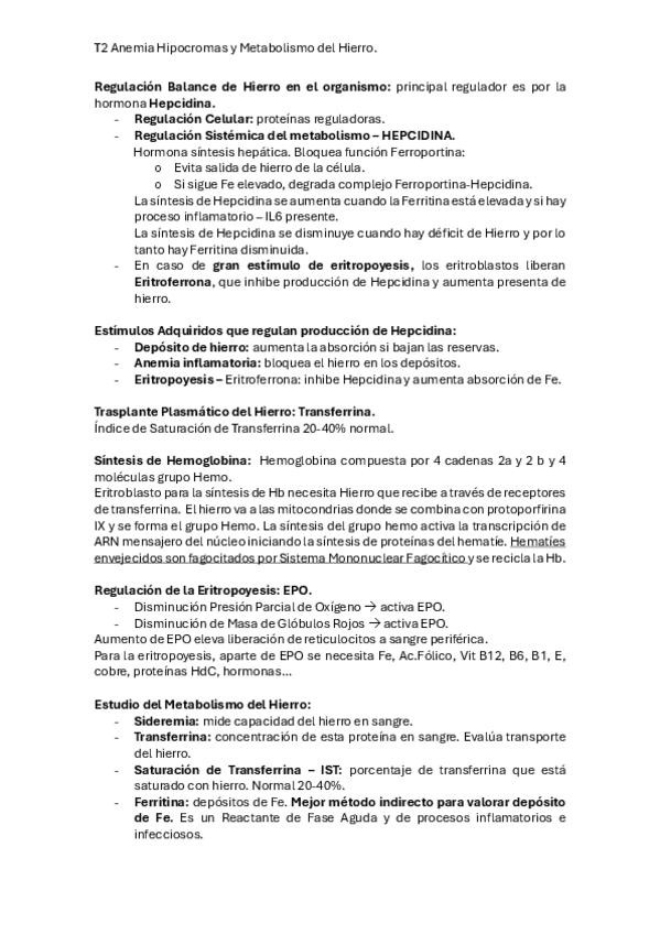 He publicado nuevos apuntes de 5º PATOLOGÍA MÉDICO QUIRÚRGICA - HEMATOLOGÍA: T2-Anemia-Hipocromas-y-Metabolismo-del-Hierro..pdf