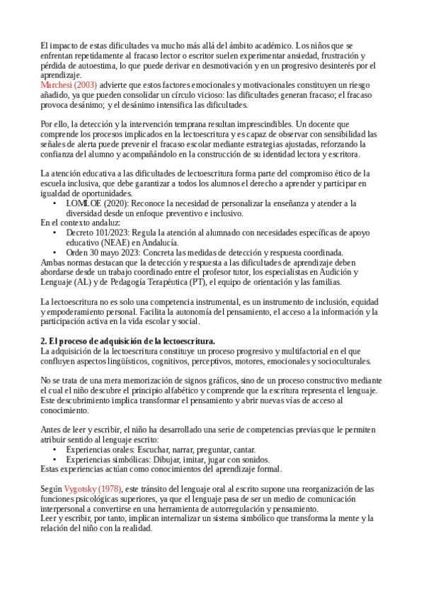 Resumen Tema 5. Adquisición, dificultades, evaluación e intervención en la lectoescritura.