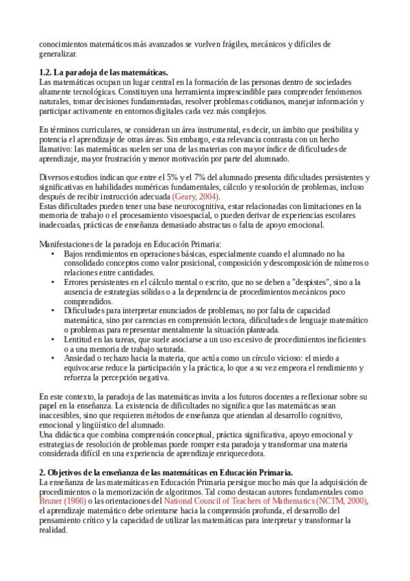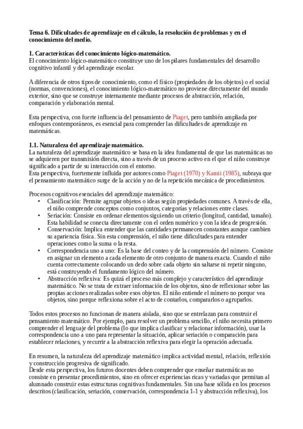 Resumen Tema 6. Dificultades de aprendizaje en el cálculo, la resolución de problemas y en el conocimiento del medio.