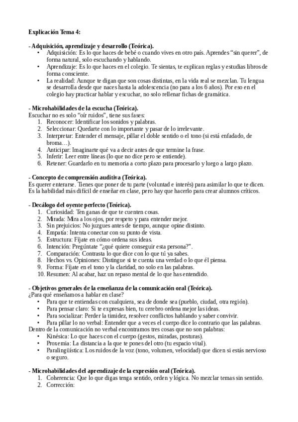 Explicación de las posibles preguntas teóricas del examen de Didáctica de la Lengua Española II. Tema 4.