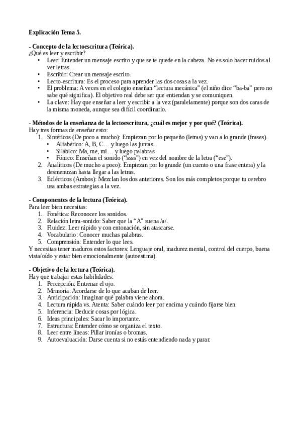 Explicación de las posibles preguntas teóricas del examen de Didáctica de la Lengua Española II. Tema 5.