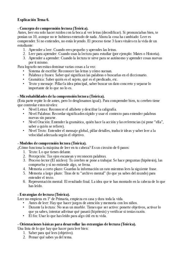 Explicación de las posibles preguntas teóricas del examen de Didáctica de la Lengua Española II. Tema 6.