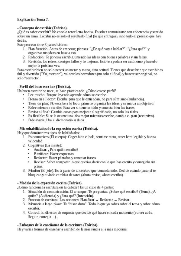Explicación de las posibles preguntas teóricas del examen de Didáctica de la Lengua Española II. Tema 7.