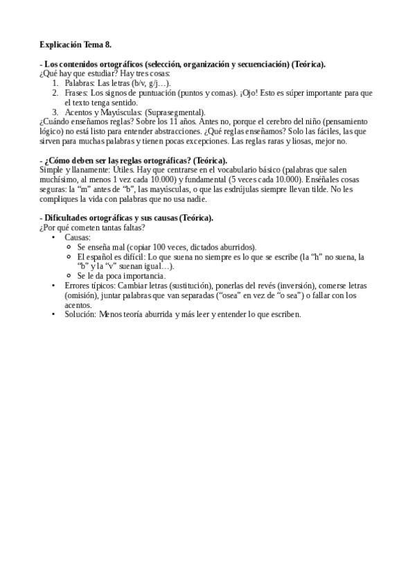 Explicación de las posibles preguntas teóricas del examen de Didáctica de la Lengua Española II. Tema 8.