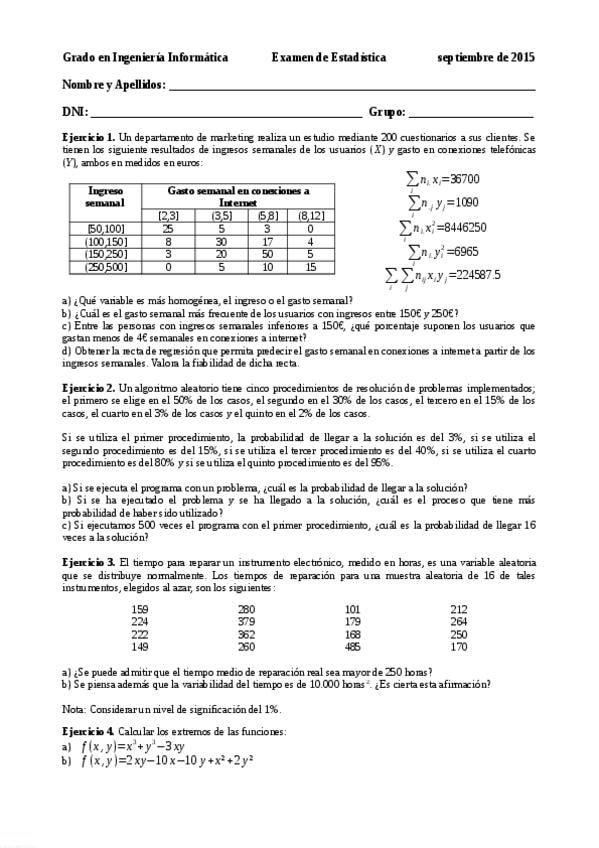 He publicado nuevos examenes de 1º Estadística: EXAMENES RECOPILACION