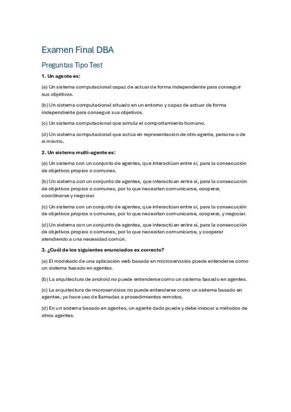 Examen FINAL. Preguntas tipo test resueltas y pregunta sobre comunicación ENUNCIADO