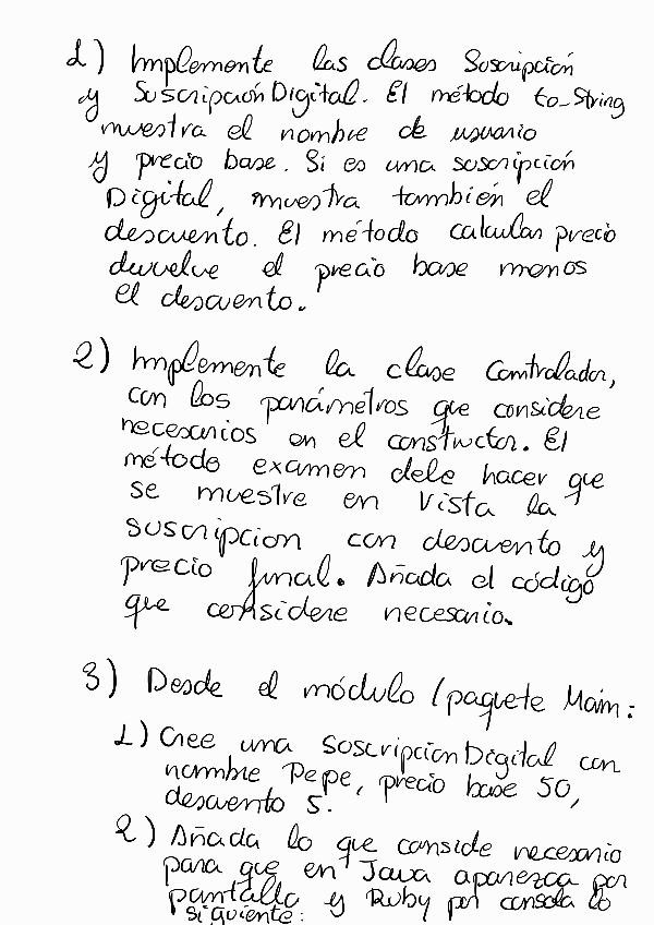 Examen de PDOO, segundo parcial del grupo de A2 de memoria Puntuación: 2 2 1 (5 puntos). Implementar en Java y en Ruby