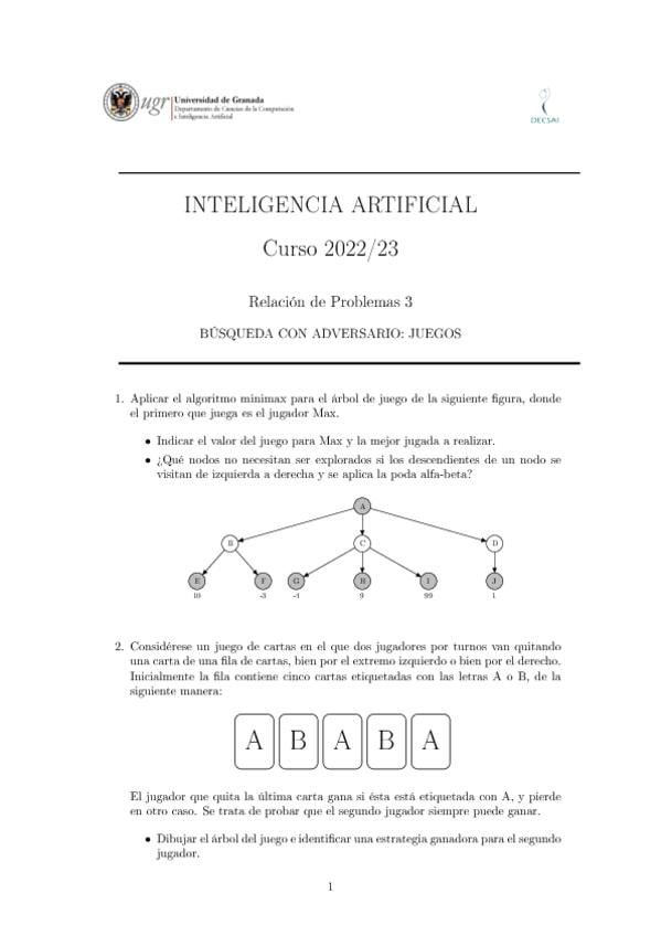 He publicado nuevos ejercicios de 2º Inteligencia Artificial: Problemas1.pdf