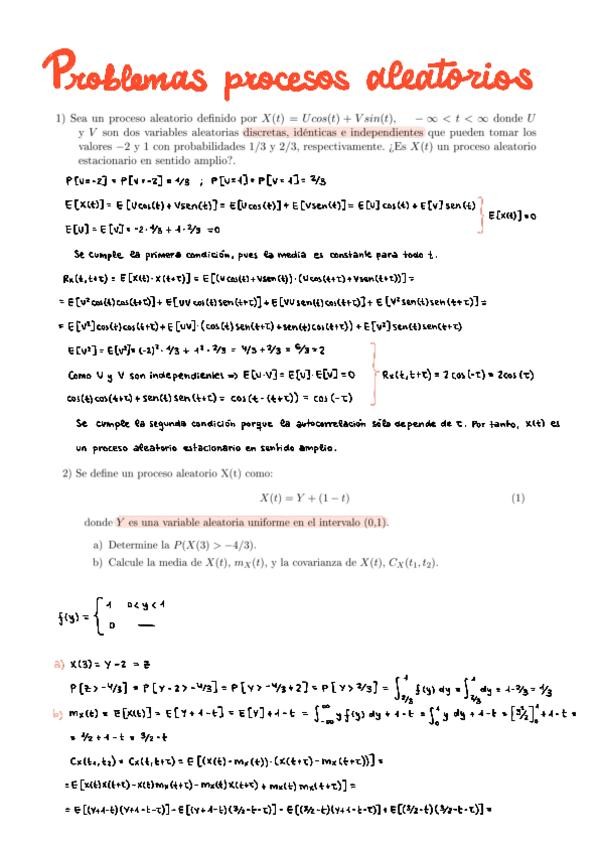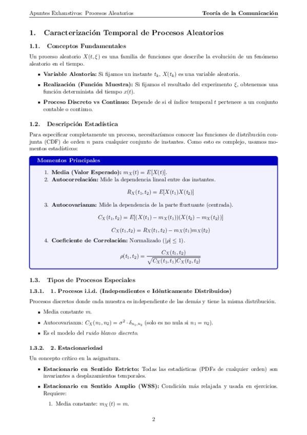 Apuntes exhaustivos del bloque 2 de TC: Procesos Aleatorios. Incluye resolución de ejercicios típicos así como formulario esencial usado en la relación propuesta de la asignatura