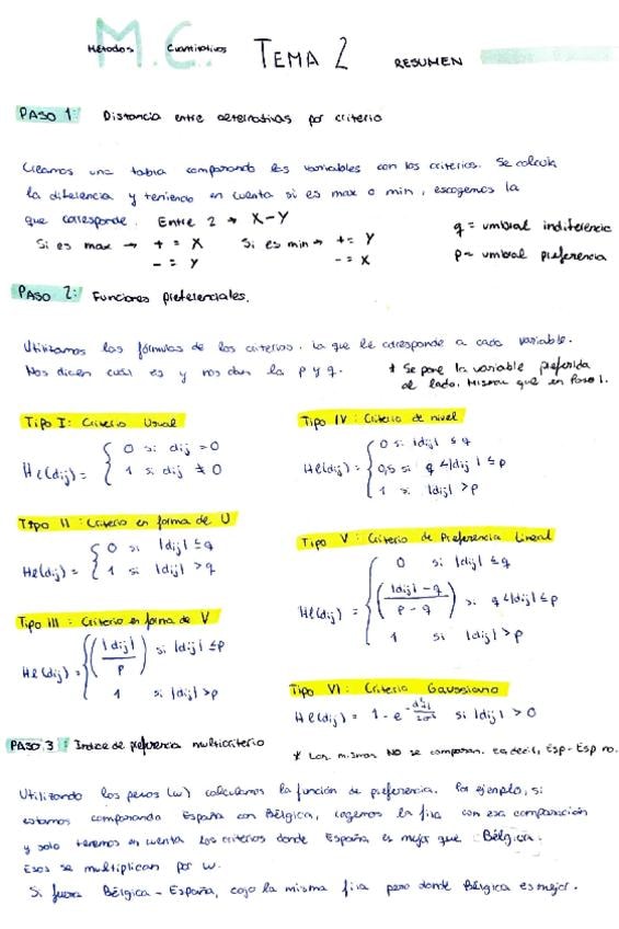 Métodos Cuantitativos (Segunda Parte) Resumen de Formulas Todos los Temas