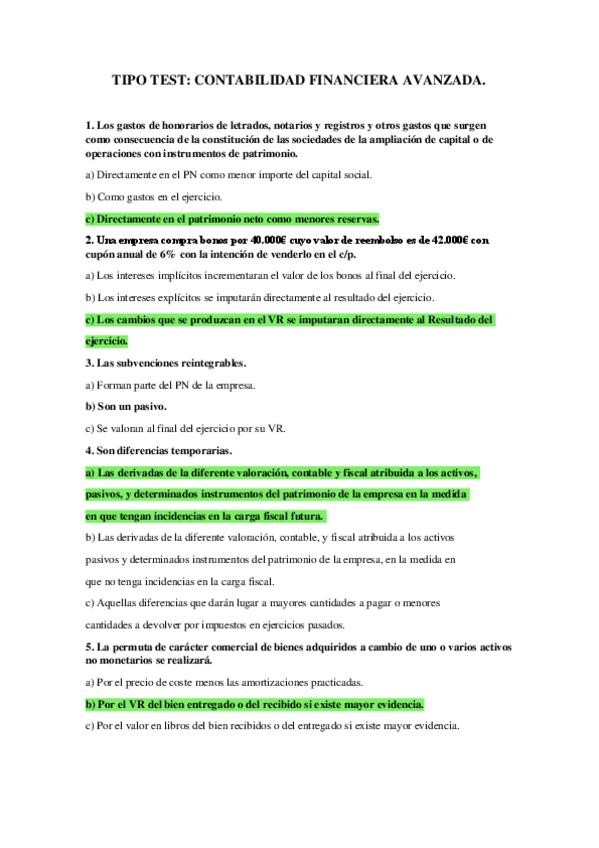 He publicado nuevos examenes de 2º Contabilidad Financiera Avanzada: Tipo Test - Contab. Fra. Avanzada.pdf