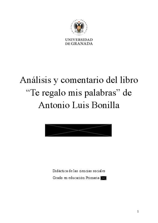Análisis y comentario del libro “Te regalo mis palabras” de Antonio Luis Bonilla