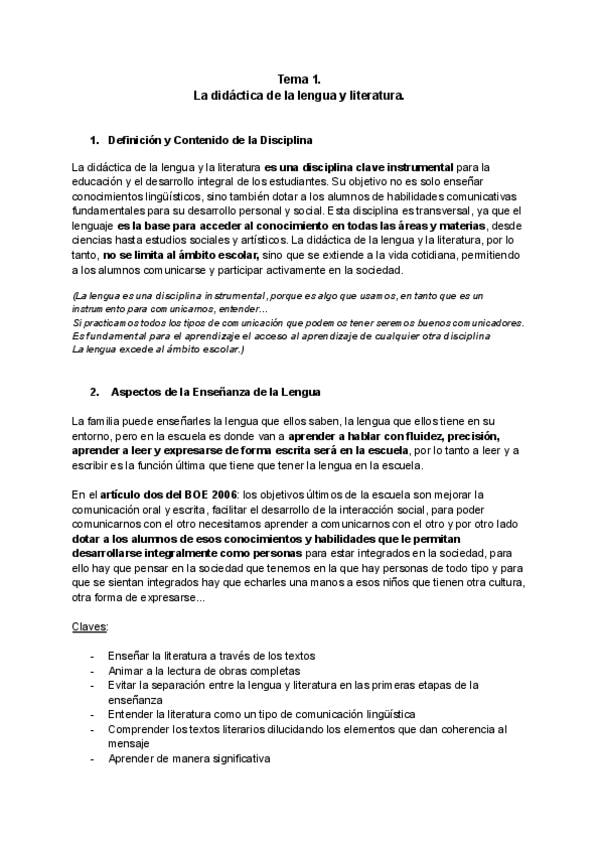 Apuntes Didáctica de la Lengua EspañolaI