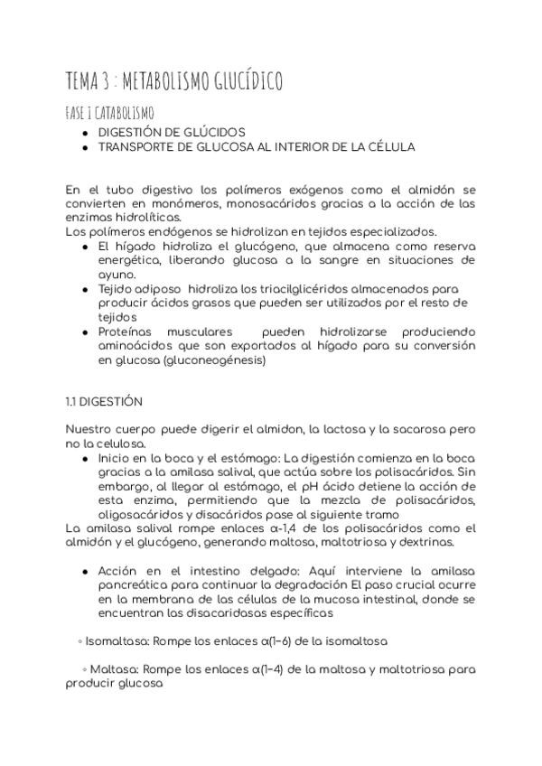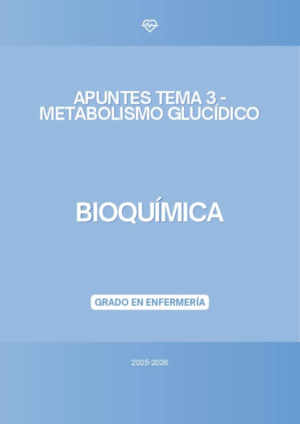 En este documento se encuentran los apuntes del tema 3 "Metabolismo glucídico" de la asignatura de Bioquímica del Grado en Enfermería