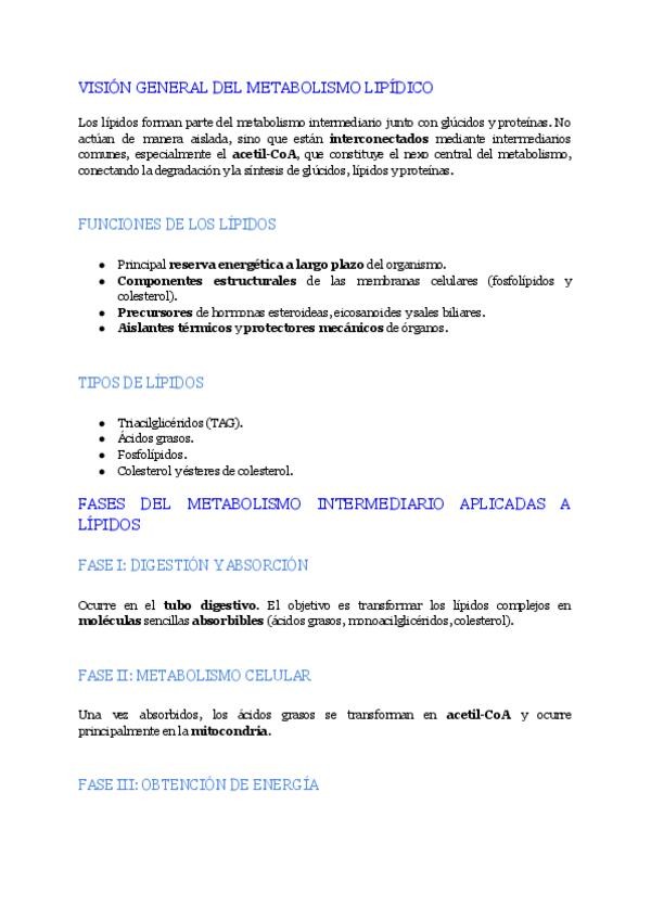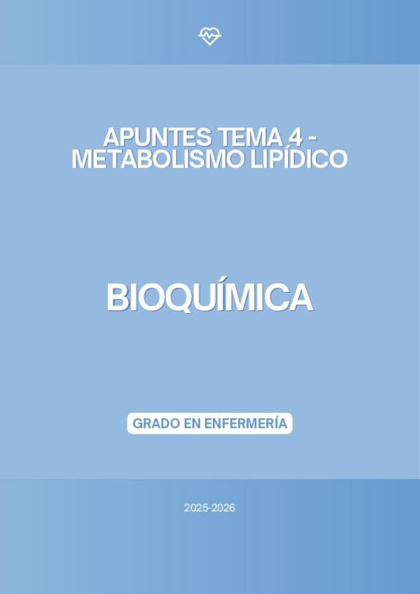 En este documento se encuentran los apuntes del tema 4 "Metabolismo lipídico" de la asignatura de Bioquímica del Grado en Enfermería del curso académico 2025-2026