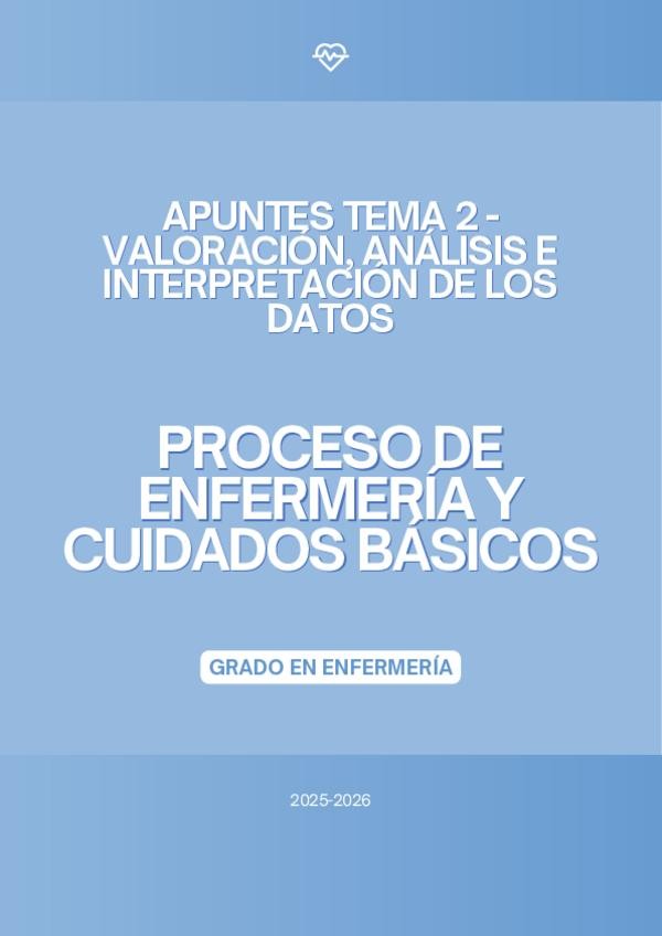 En este documento se encuentra el tema 2 de la asignatura "Proceso de Enfermería y Cuidados Básicos" de la profesora Marta López Bueno del curso académico 2025-2026
