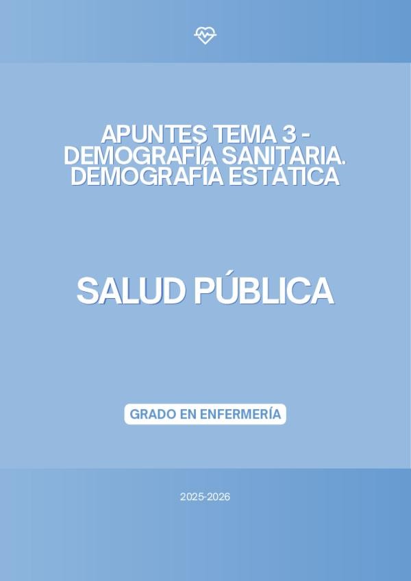 En este documento se encuentra el tema 3 de la asignatura de "Salud Pública" del Grado en Enfermería de la profesora Evelyn del curso académico 2025-2026