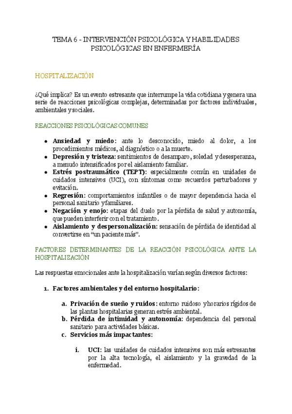 En este documento se encuentra el tema 6 de la asignatura "Psicología de la Salud" del Grado en Enfermería, de la profesora Bibinha del curso académico 2025-2026