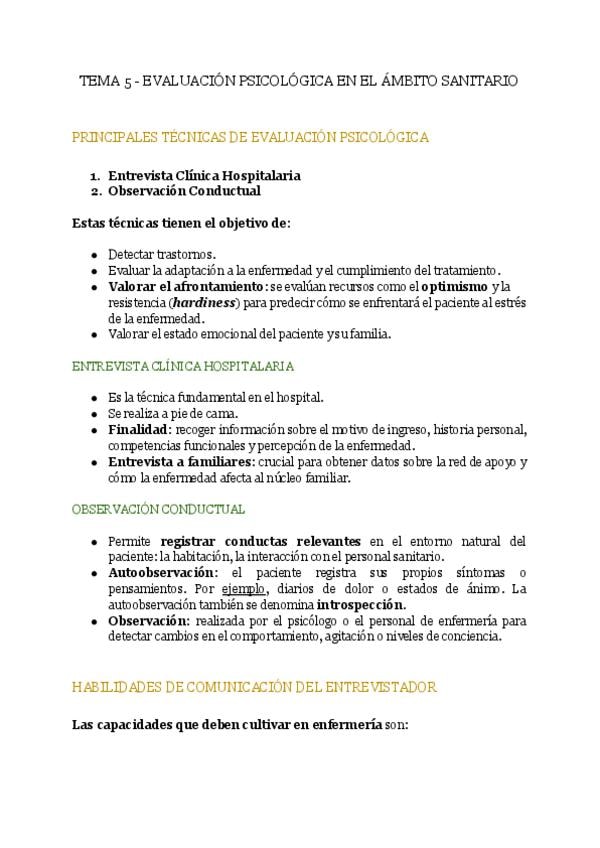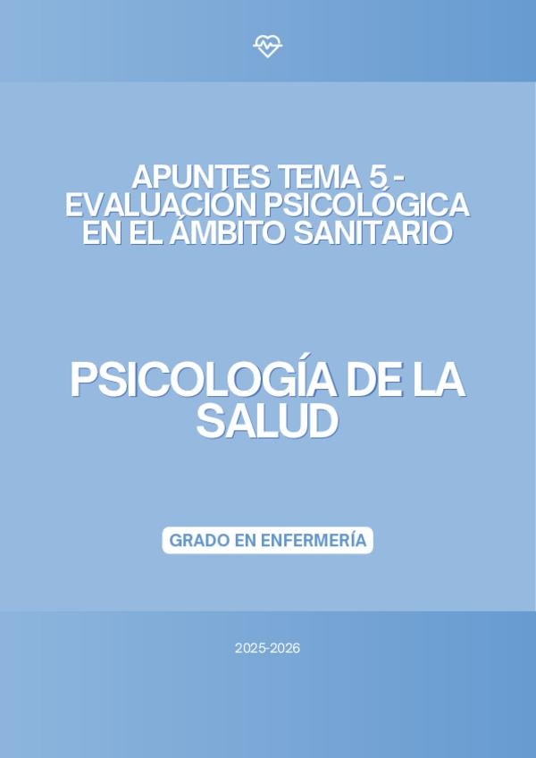 En este documento se encuentra el tema 5 de la asignatura "Psicología de la Salud" de la profesora Bibinha del Grado en Enfermería del curso académico 2025-2026