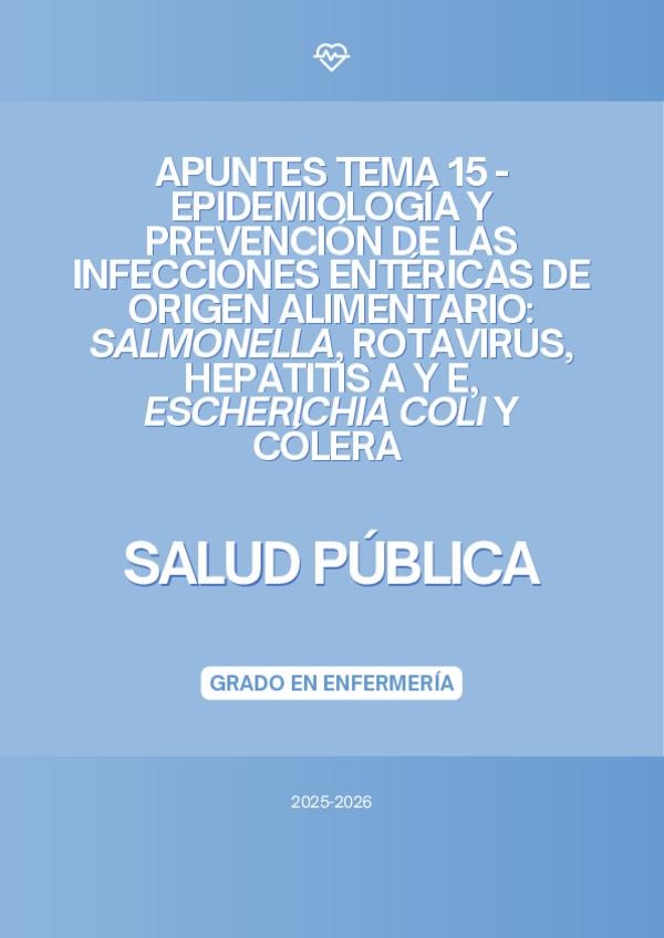 En este documento se encuentra el tema 15 de la asignatura de "Salud Pública" del Grado en Enfermería de la profesora Carla del curso académico 2025-2026