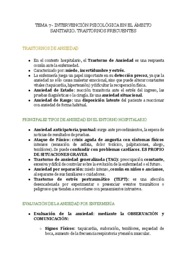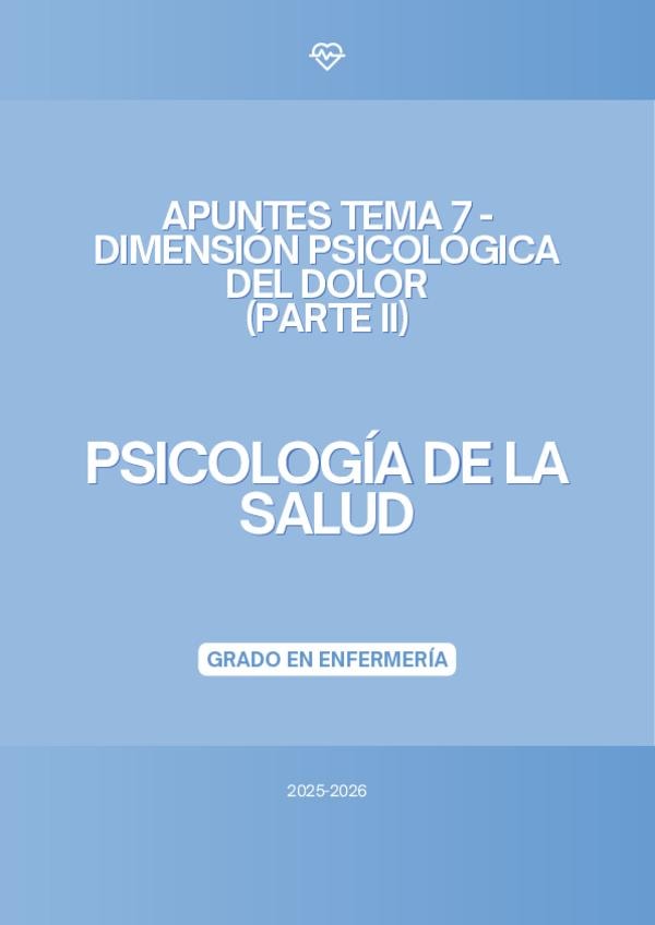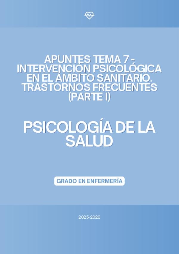 En este documento se encuentra LA PRIMERA PARTE del tema 7 de la asignatura "Psicología de la Salud" del Grado en Enfermería, de la profesora Bibinha del curso académico 2025-2026