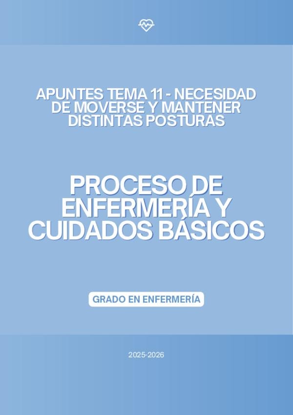 En este documento se encuentra el tema 11 de la asignatura "Proceso de Enfermería y Cuidados Básicos" de Marina del curso 2025-2026