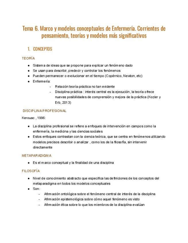 Marco y modelos conceptuales de Enfermería. Corrientes de pensamiento, teorías y modelos más significativos