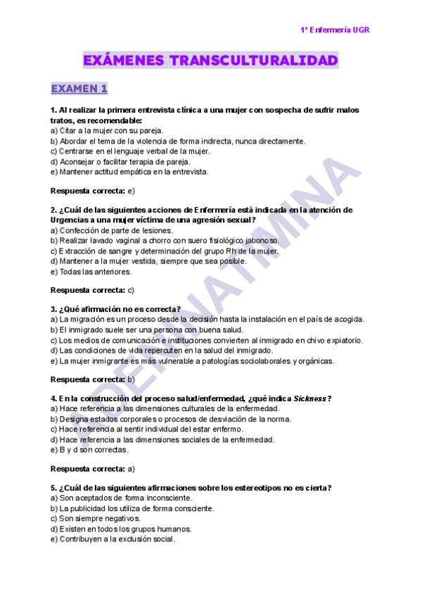He publicado nuevos examenes de 1º Transculturalidad, Genero y Salud: Preguntas-de-Examenes-por-temas-transculturalidad.pdf