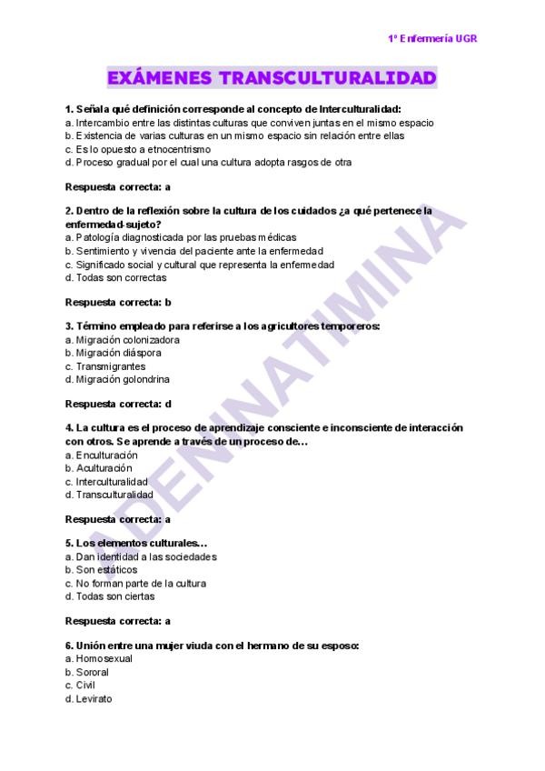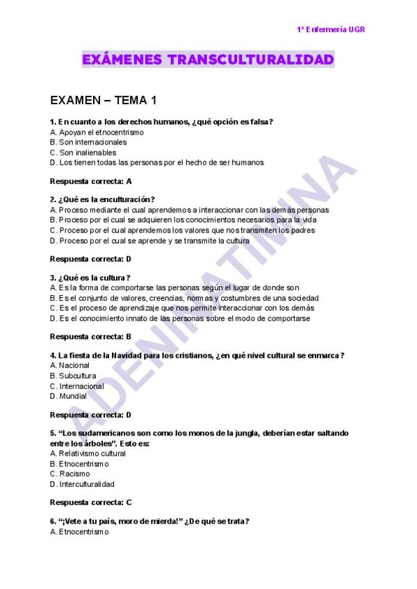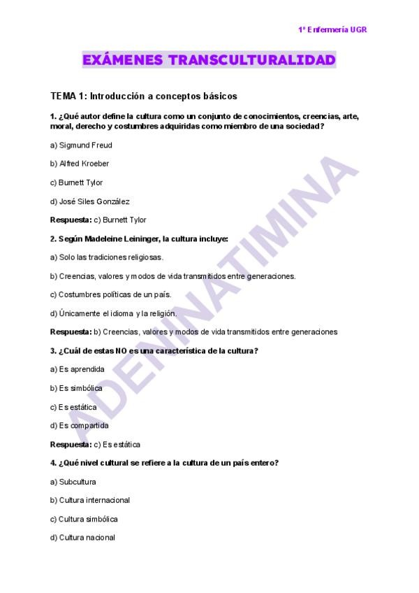 He publicado nuevos examenes de 1º Transculturalidad, Genero y Salud: Examen-transculturalidad-No1.pdf