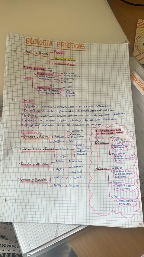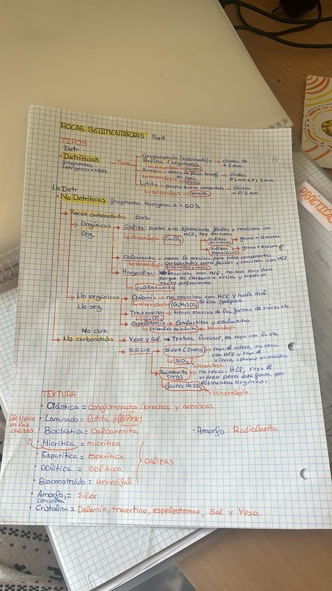 Esquema de clasificación de las rocas, para las prácticas de geología