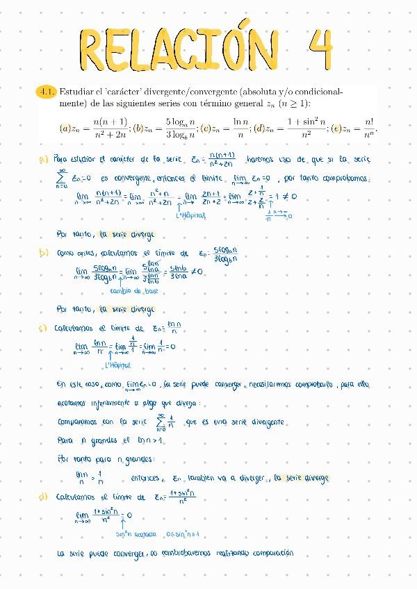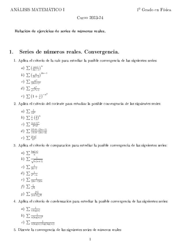 He publicado nuevos ejercicios de 1º Análisis Matemático I: relacion5-series.pdf