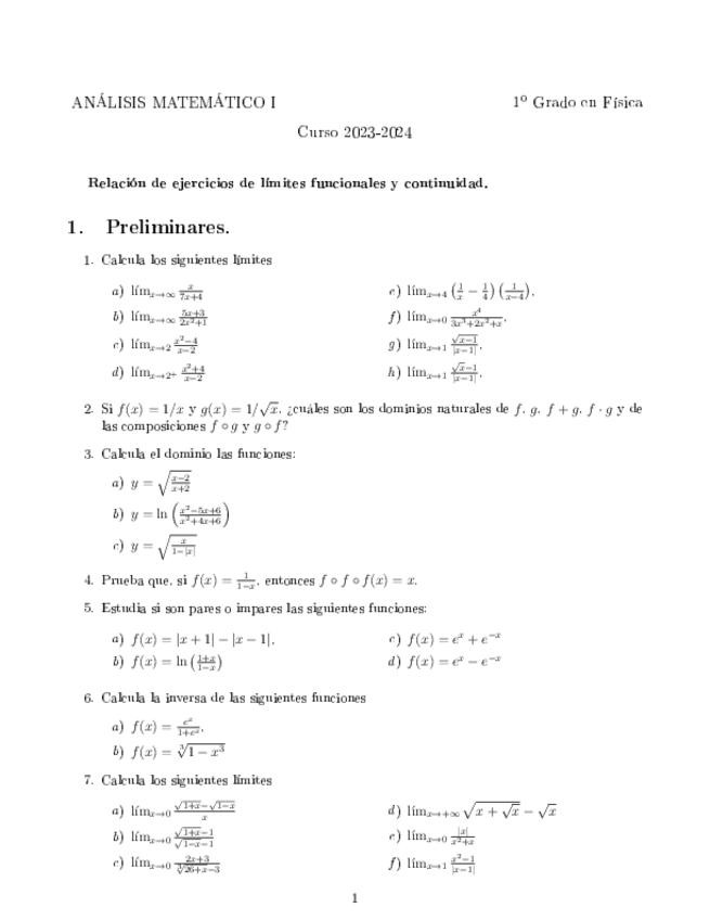 He publicado nuevos ejercicios de 1º Análisis Matemático I: relacion6-limites-continuidad.pdf