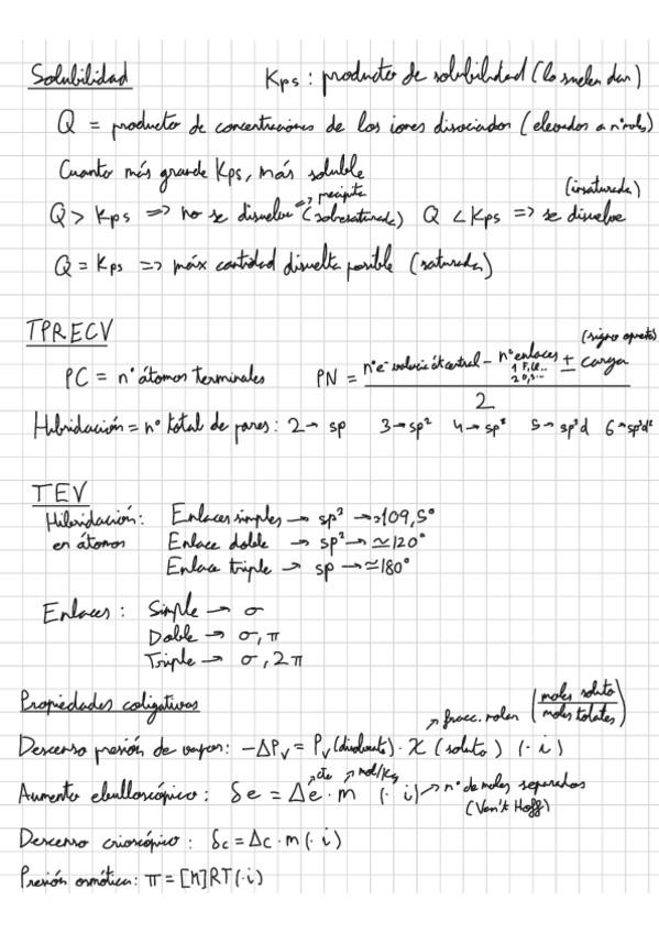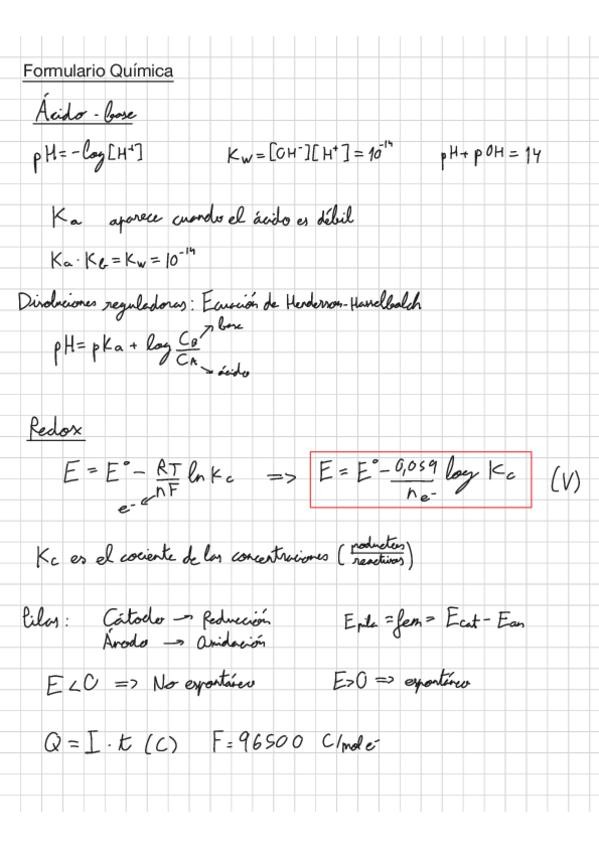 Formulario de los conceptos principales para los ejercicios de química