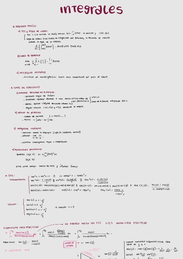 Resumen teórico y ejercicios tipo examen del tema de funciones. Incluye estudios de monotonía con derivadas, optimización, funciones integrales con el TFC y buscar número de 0 (usando los teoremas).