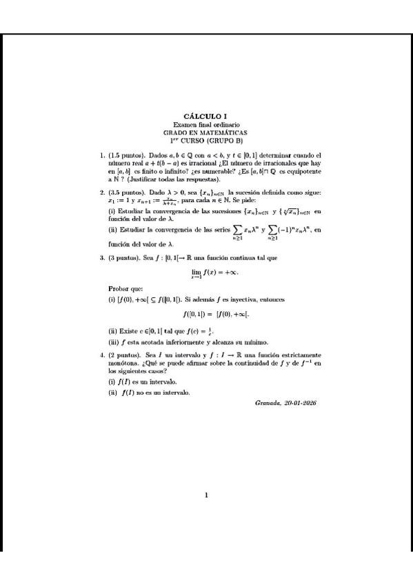 He publicado nuevos examenes de 1º Cálculo I: Examen-Final-Calculo-2026.pdf