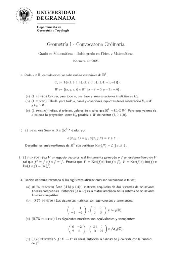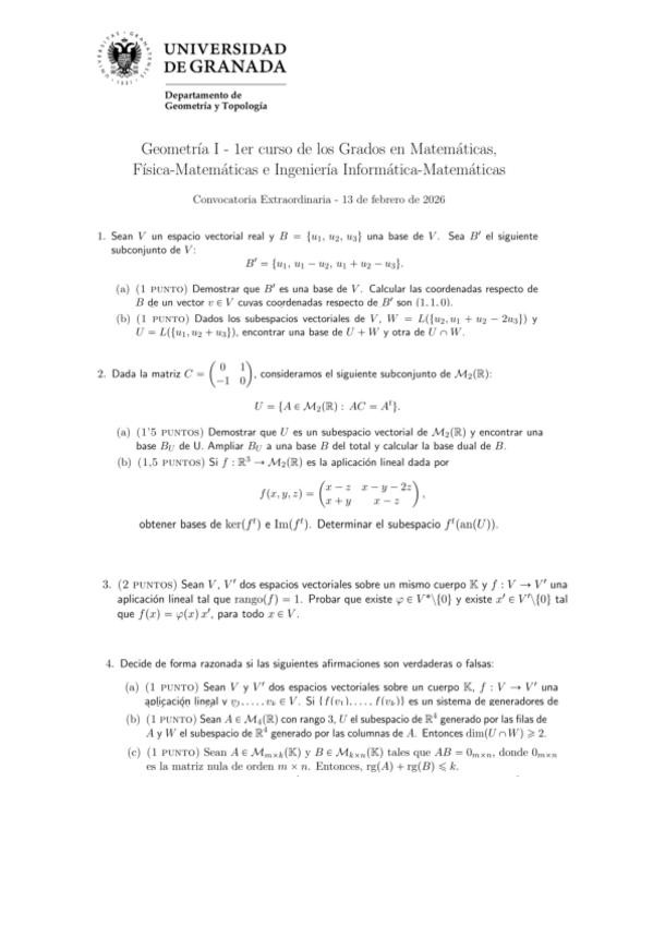 He publicado nuevos examenes de 1º Geometría I: Examen-extraordinaria-Geometria-l-2026-grado-matematicas-y-fisica.pdf