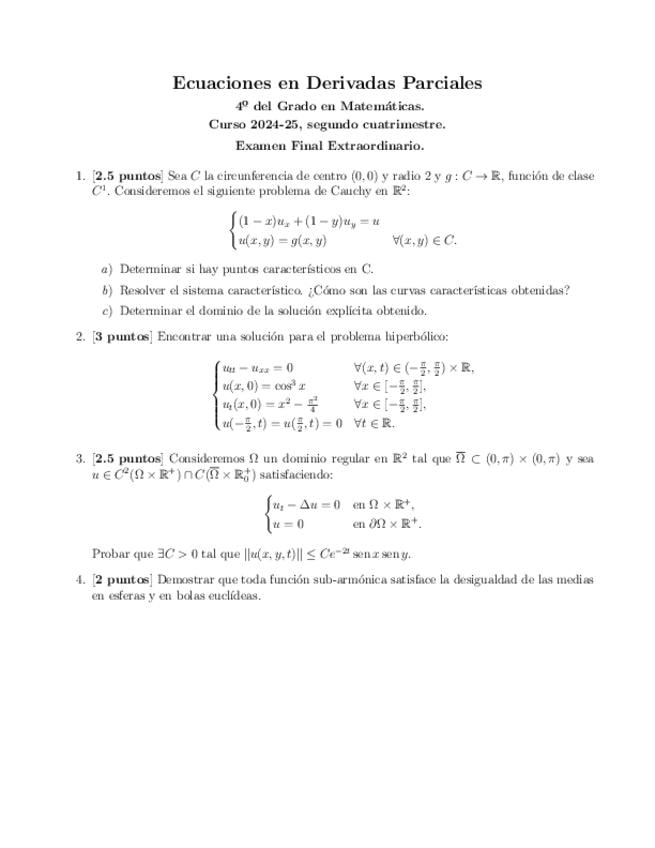 He publicado nuevos examenes de 4º Ecuaciones en Derivadas Parciales: 2025Extraordinaria.pdf