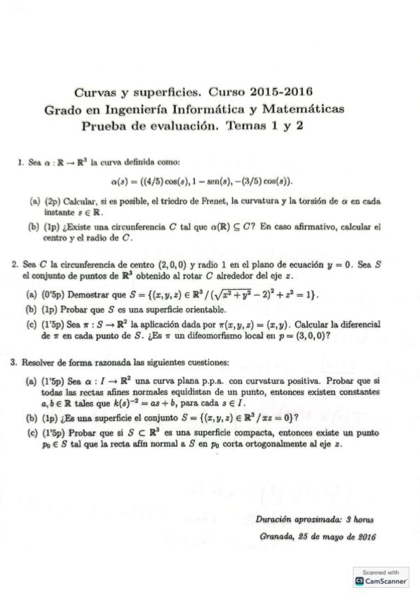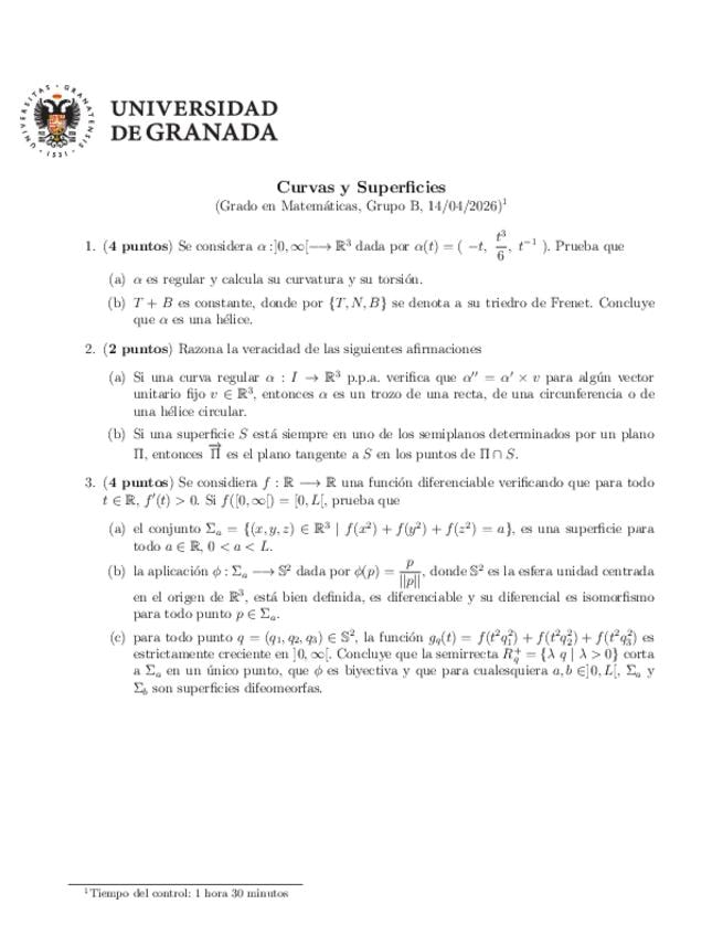 He publicado nuevos examenes de 2º Curvas y Superficies: Ordinario-2025.pdf