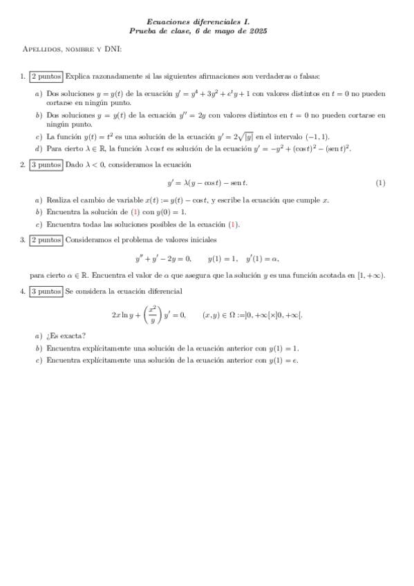 He publicado nuevos examenes de 2º Ecuaciones Diferenciales I: Parciales 2025