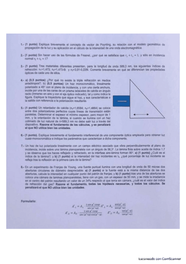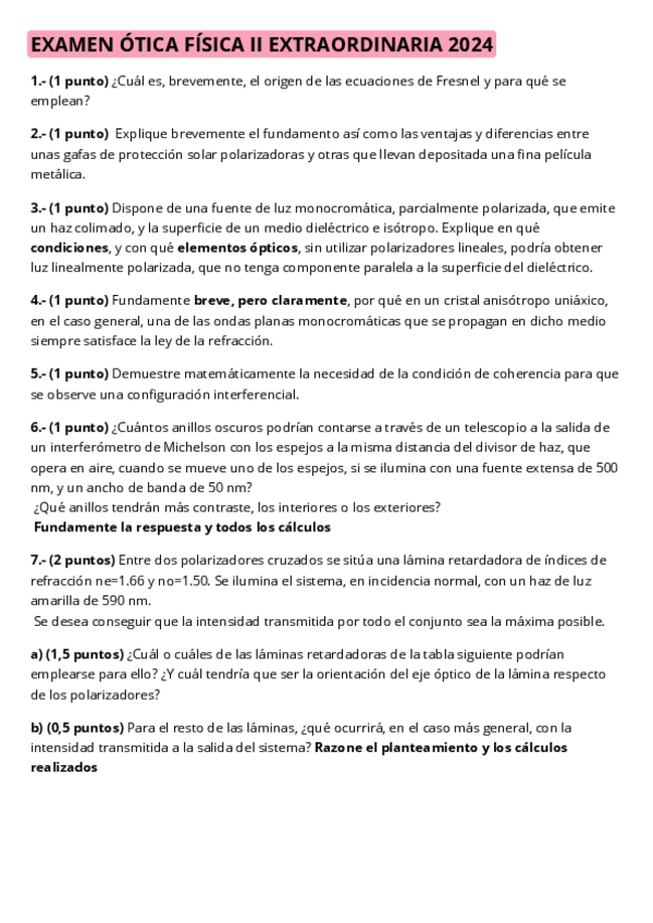 He publicado nuevos examenes de 2º Óptica Física I: Óptica Física I
