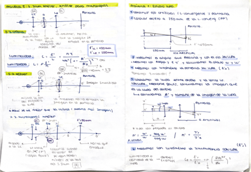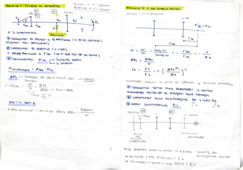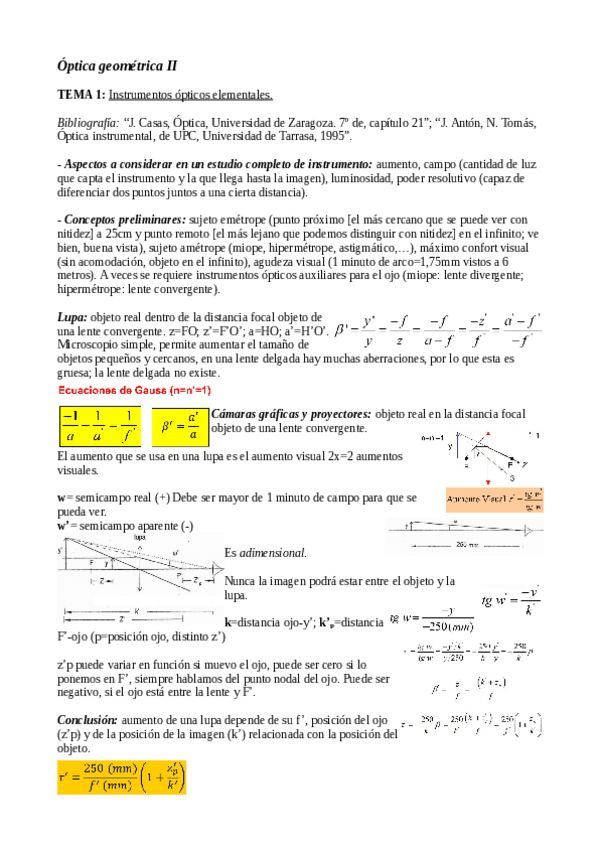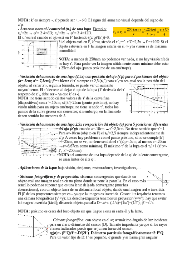 Subo algunos apuntes de óptica geométrica II. Muy completos con esquemas y fórmulas a color.