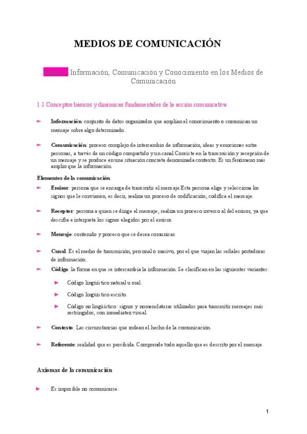 He publicado nuevos apuntes de 1º Medios de Comunicación: TEMA 1 MEDIOS