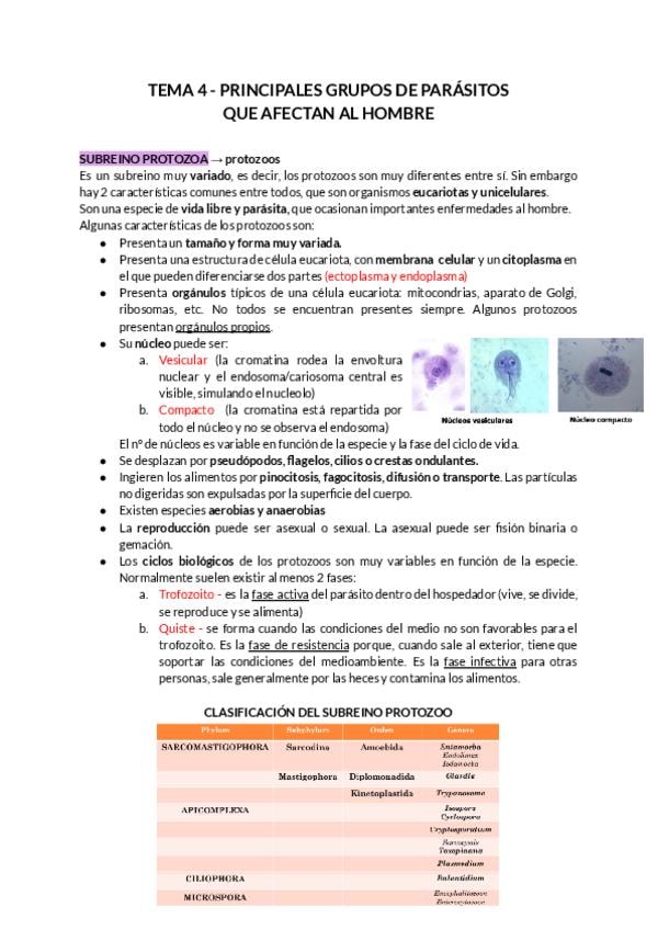 Prácticas de parasitología con imágenes y características identificativas de cada parásito