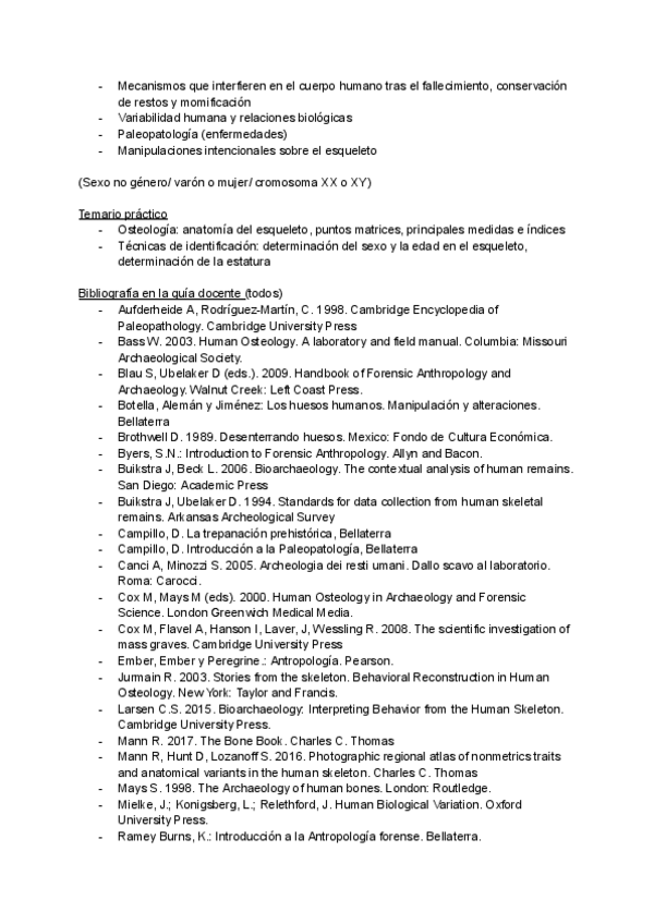 Apuntes de toda la asignatura de Antropología Física y Forense de 3º de carrera del grado de Arqueología