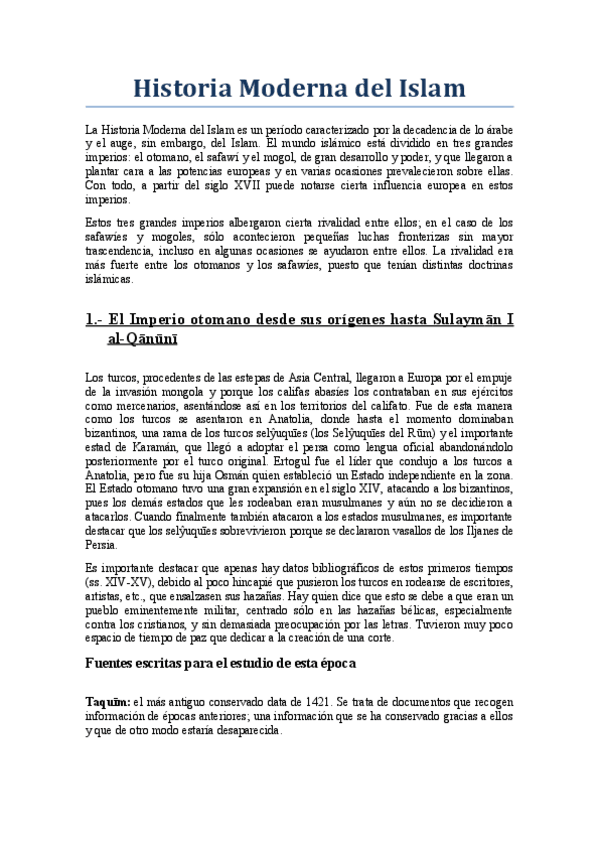 He publicado nuevos apuntes de 3º Historia moderna del islam: Historia Moderna del Islam.pdf
