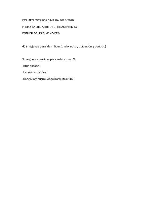 He publicado nuevos examenes de 2º Historia del Arte del Renacimiento: Renacimiento-Extraordinaria-25-26-Esther-Galera-Mendoza.pdf