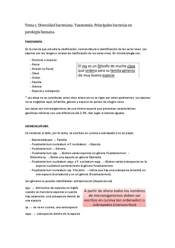 Tema 1. Diversidad bacteriana. Taxonomía. Principales bacterias en patología humana.