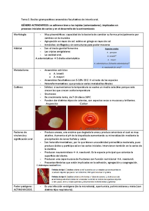 Tema 3. Bacilos grampositivos anaerobios facultativos de interés oral. Tema 4. Bacilos gramnegativos anaerobios facultativos de interés oral.